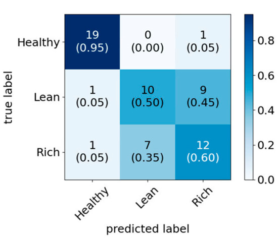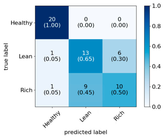 The confusion matrixes for Model 3 are presented in Figure 12, Figure 13 and Figure 14 for the three experimental cases. From the confusion matrixes, it is also seen that there is a significant improvement in FN, FP, TP and TN, compared to those of the standard model, but similar level to those of Model 2, even though the feature dimension has been reduced significantly.