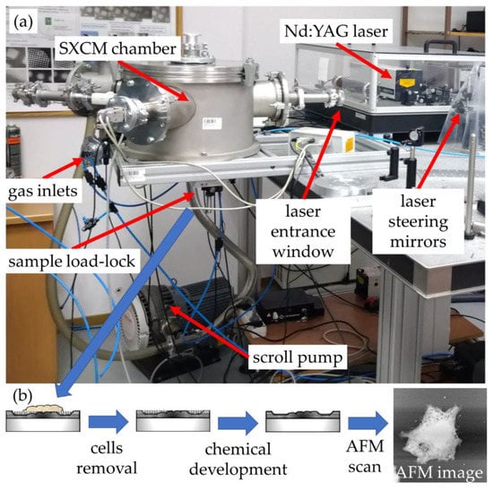 (a) Soft X-ray contact microscopy (SXCM) system and (b) the flowchart of the SXCM sample-processing procedure.