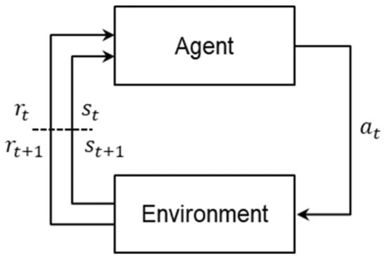 In reinforcement learning (RL), the focus lies on finding a control policy that is able to achieve a given goal. In this context, RL is formalized as a Markov decision process and builds upon iterative learning. During this process, a RL agent selects an action at based on the current policy and state st, which is executed in a given environment. Afterwards, the environment transitions into a new state st+1 and the agent receives a reward rt + 1 (see Figure 4). By interacting with the environment, the policy is iteratively updated using a RL method to maximize the long-term reward. Various methods are used to compute the optimal policy, value-based and policy-based approaches being the most common ones. Regarding complex problems, neural networks are widely applied in order to predict the optimal policy or value function [30].