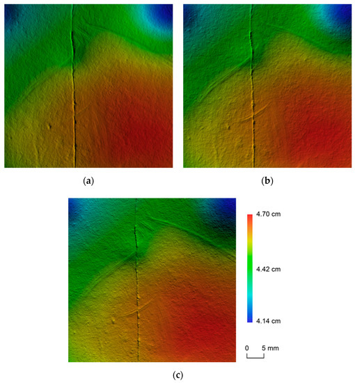 An alternative feasible possibility can be to move the camera lens system to a linear stage. It is what Vavulin et al. [9] used, where they made use of a slider mounted on a graduated tripod. In particular, the article presented a 3D scanning method that yields enough resolution to record microrelief and identifies runic signs. However, to get a proper macro photo set, it is necessary to ensure accurate parallel camera pan both horizontally and vertically. In Angheluță and Rădvan [21], they presented a workflow using macro photogrammetry for the 3D digitization of polychromies on a wooden support. The camera was mounted on a robust and precise positioning system (ARTIST CPS-200 from ArtInnovation) to achieve camera movement on all three axes.