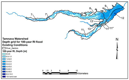 - Baseline scenario (existing conditions, “no action” scenario). This scenario includes only existing flood protection measures and assumes that flood protection level in the watershed would remain the same in the future.