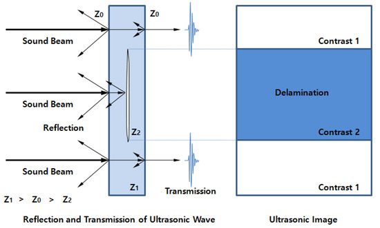 The ultrasound sound pressure changes because of the acoustic impedance change and attenuation/scattering in a material. Defects are also detected through the ultrasonic sound pressure images obtained as a result of such changes.