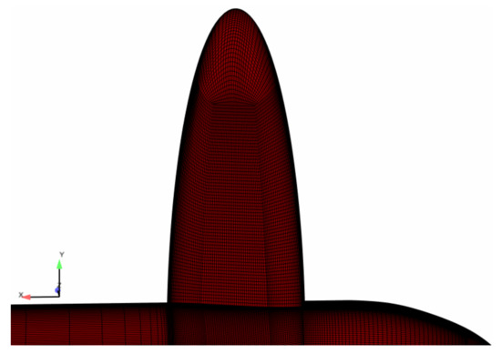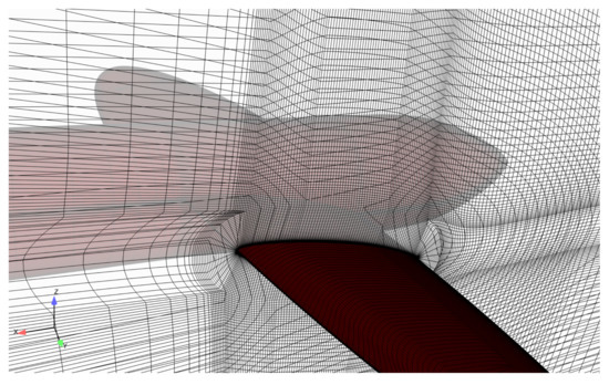 Three grid densities were used in the calculations. The details are summarized in Table 1. The structured grid has an O-O topology around the foils. The finest grid level consists of roughly 7.3 million cells in 80 grid blocks. The grid resolution around the leading and trailing edges is reasonable, and there are about 15 cells around the leading-edge radius. Due to the O-O topology, the same resolution is applied around the blade tip and the trailing edge as well. In this work, we emphasized the resolution of the sheet cavitation on the wings, and for this reason no clustering of cells was targeted for the cavitating tip vortex, for instance. The grid is refined normal to the viscous surfaces such that at the finest grid level. A detail of the grid is shown in Figure 4, and the grid resolution on the surface of the foil is shown in Figure 5.