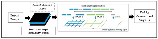 Spatial Pyramid Pooling (SPP) [25,26] is one of computer vision’s most popular approaches. Spatial Pyramid Pooling (SPM) is commonly referred to as SPP and Bag-of-Words (BOW) model development [43]. SPP [24] belongs to an essential feature of leading and competitive classification schemes [44,45,46] and detection [47] before the current rise of CNN.