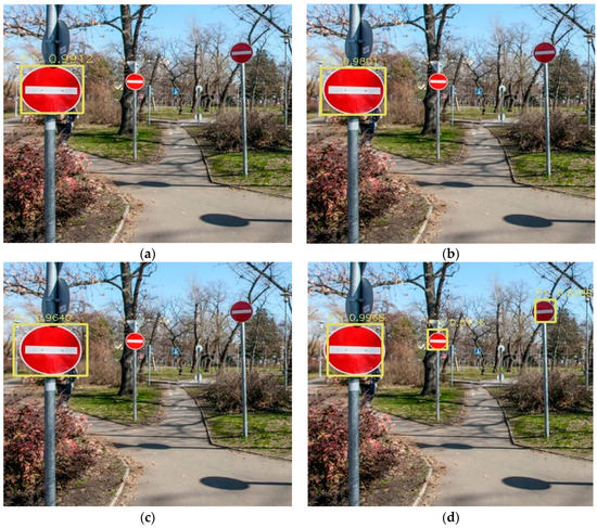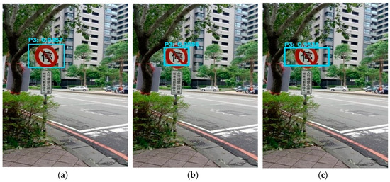Furthermore, p(o) is the precision of the Taiwan prohibitory sign detection. Precision and Recall are illustrated by Equations (12) and (13), [40,54]: