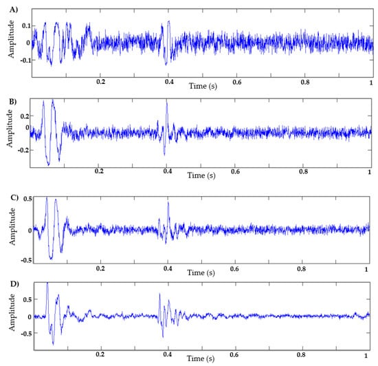 As mentioned before, the second stage of the proposed method aims to reduce the noise level of the synthetic signal generated by the GAN model. It is understood that as the number of epochs in the training of the generator and discriminator models increases, the noise of the synthetic signal is attenuated; however, it requires many epochs, and in turn, a long computation time [39]. Therefore, in order to reduce the number of GAN training epochs required to generate synthetic signals with acceptable noise levels, it was decided to introduce a post-processing stage using the algorithm proposed in [40], called empirical wavelet transform (EWT). The EWT allows the extraction of different components of a signal by designing an appropriate filter bank. The theory of the EWT algorithm is described in detail in [40]. This algorithm has been used in different signal processing applications [41,42,43]. In [9], a modified version of this algorithm was used as a pre-processing stage in the analysis of heart sounds. Its implementation is described in more detail in [9]. In this work, it was decided to use as a reference the method proposed in [9] to reduce the noise of the synthetic signal.