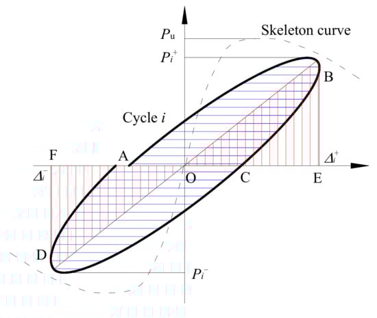 In the seismic analysis, the equivalent damping coefficient (he) and energy dissipation was used to evaluate the energy dissipation capacity. The equivalent viscous damping coefficient could be calculated as Equation (4).