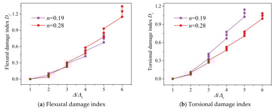 Influence of axial compression ratio on the damage index.