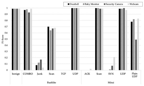 - Meidan, Y.; Bohadana, M.; Mathov, Y.; Mirsky, Y.; Shabtai, A.; Breitenbacher, D.; Elovici, Y. N-BaIoT—Network-based detection of IoT botnet attacks using deep autoencoders. IEEE Pervasive Comput. 2018, 17, 12–22. [Google Scholar] [CrossRef]