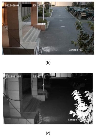 Images in the same visibility (10,000 m) at different time. (a) daytime image; (b) evening image; (c) late-night image.