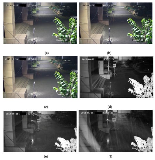 is the estimated visibility, is the measured value by visibility meter, , N is the number of samples. The final experimental results in Table 5 show that the proposed algorithm made fewer errors than V1 and V2. Some of the experimental images were captured in various common nighttime conditions (clear day, foggy, and rainy conditions), which shows that our algorithm has high accuracy under common nighttime weather conditions. In addition, experiments have shown that our approach provides better performance when data size increases.