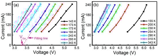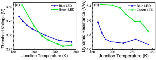 - Meyaard, D.S.; Cho, J.; Fred Schubert, E.; Han, S.-H.; Kim, M.-H.; Sone, C. Analysis of the temperature dependence of the forward voltage characteristics of GaInN light-emitting diodes. Appl. Phys. Lett. 2013, 103. [Google Scholar] [CrossRef]