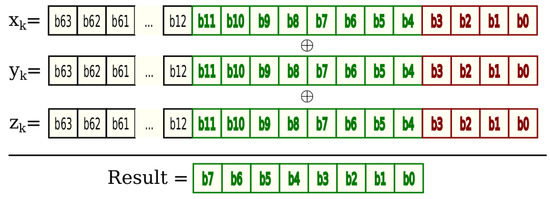 For the pRNG in [16] the least significant nibble of each state of system (1) was discarded and the next bytes xor-ized, as shown in Figure 1. A sequence obtained was tested for randomness with the NIST [14] battery test.