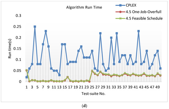In , all the short jobs in have to be processed on machines . In addition, we have also proved that the overall processing time of the planned long and median jobs on machines in as a lower bound. Therefore, the above inequality shows that cannot make all of the jobs done in the time, which is a contradiction.