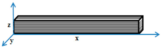 The axes are x, y and z as the coordinate system shown in Figure 1. Axis x is in the longitude direction of the fibers, axis y is in the transverse direction and axis z is the thickness direction of the laminate. The corresponding dominant thermal coefficients are denoted as and , respectively, and the differential equation of Equation (6) can be simplified to: