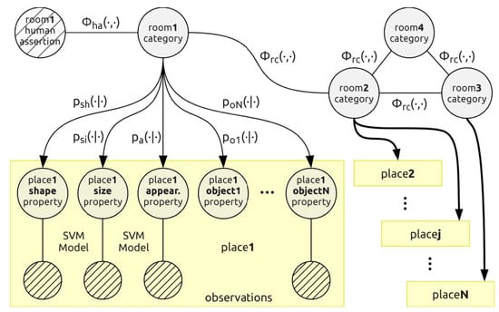 Conceptual map is shown in Figure 7. Every specific instance of the room is represented by a set of random variables, one for each property associated with that place.