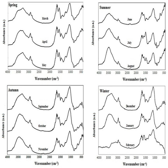 3.2. Characteristics of the FTIR Spectrum of Biosolids