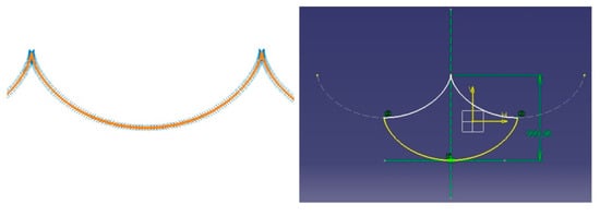 This curve can be obtained in the DMU Kinematics Simulator module of CATIA V5, in which the software is instructed to draw the trajectory of a previously defined point of the circle, whereby this cycloidal curve describes a succession of points joined by a spline (Figure 4).