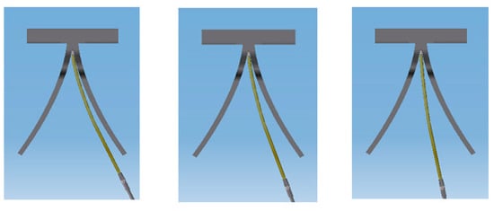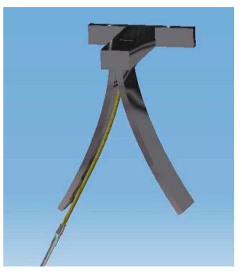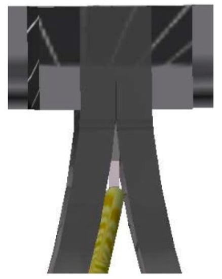 Finally, the process that follows is analogous to the previous process: In the simulation with commands a simulation is edited, and a film is then created or a video is generated. As can be observed in Figure 16, the string is curved before reaching the cycloidal blade, and precisely at the moment of arrival it adopts the shape of the blade, which represents a good approximation.