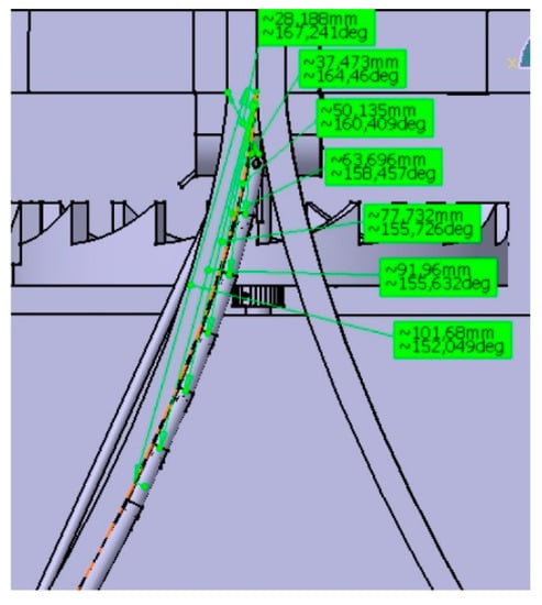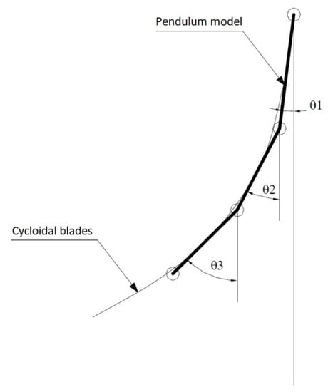 where j is a link and i is the link immediately before. In order to fully define the links, it suffices to measure the angles with respect to the vertical in the initial position of tangency to the cycloidal blade (Figure 14 and Figure 15).