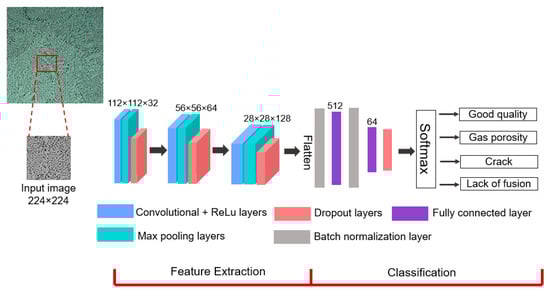 Final schematic of the convolutional neural network (CNN) model for autonomous recognition of LMD build parts quality.