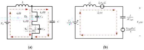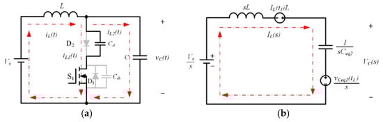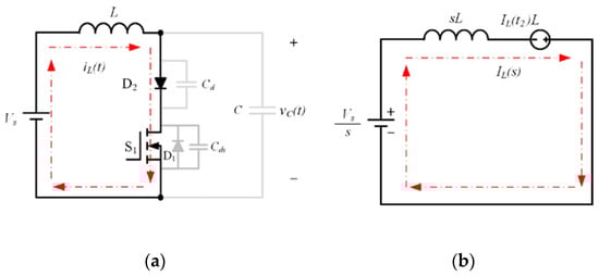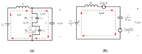 Figure 6a,b depict the equivalent circuit and the Laplace transform circuit, respectively.