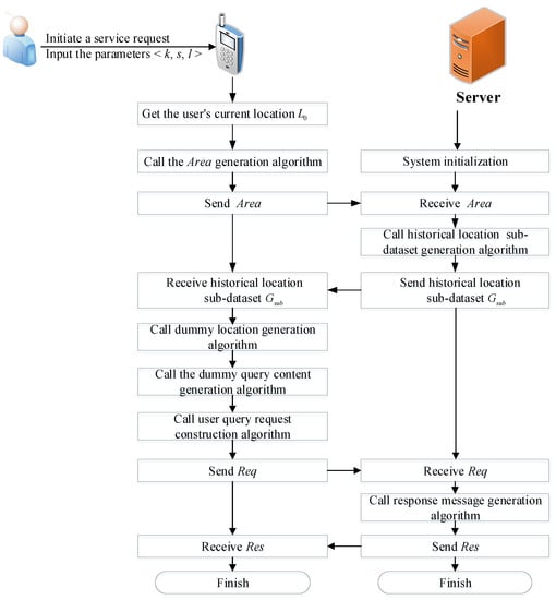 - System initialization: This mainly refers to obtaining the user’s current location and initializing the historical location dataset G on the server.
