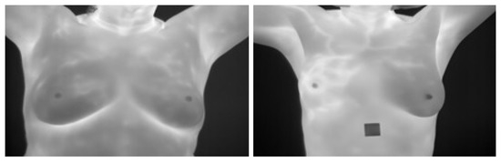 The main idea of breast thermography techniques is that each object (the breast in our case) produces infrared radiation which measures the vascular heat radiated [9,10]. It was found that the growing tumor has a higher metabolic percentage than the other surrounding area and associated rise in local vascularization [11]. Based on this discovery, it was proved, by asymmetric heat patterns, that there is a difference between abnormal and normal thermogram images [11]. Visual asymmetric heat patterns can be noticed in Figure 1. As can be seen in this figure, the left image shows a normal breast in which the heat distributions in the left and right breast are symmetric but asymmetric in the right image. Usually, physicians/oncologists look for such abnormalities and decide subjectively. However, it is not always possible to diagnose all types of abnormalities found in thermograms by just naked eyes. Automatic or semi-automatic techniques such as Computer-Aided Detection or Diagnosis (CAD/CADx) are beneficial as they can help physicians/oncologists on discovering more information on such abnormalities from medical images [7,12]. A typical CAD system usually consist of six major phases as shown in Figure 2.
