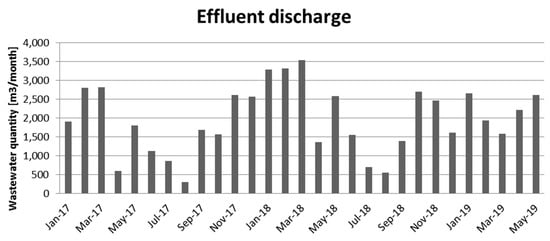 Monthly effluent discharge from the CW of Cecchi winery, monitored from January 2017 to May 2019.