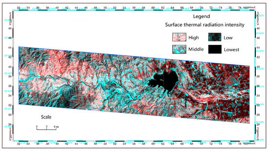 Enhanced thematic mapper (ETM) remote sensing surface thermal radiation map of Lushan geothermal belt.