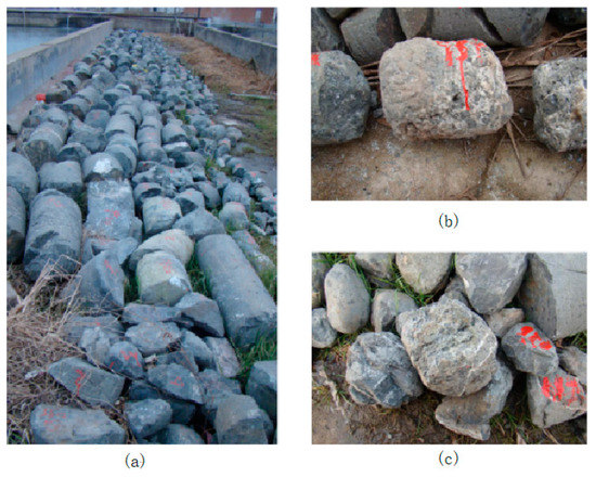 Rock core of Shentang geothermal well, andesite of Majiahe formation in Xionger group. (a) Full view photo of rock core. (b,c) Close shot photos of broken rock core.
