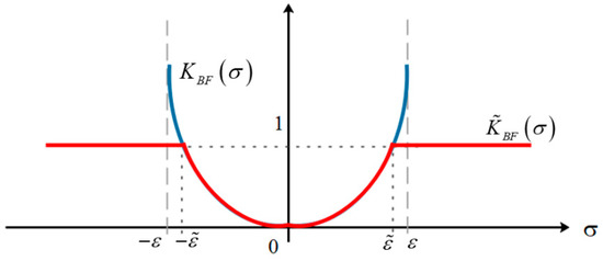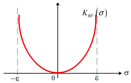 Before we describe the proposed adaptation strategy, the BF’s definition needs to be presented. The BF is a positive, even function, depicted in Figure 1, defined on the interval , where and is strictly increasing on [0,ε) and has a minimum at zero .