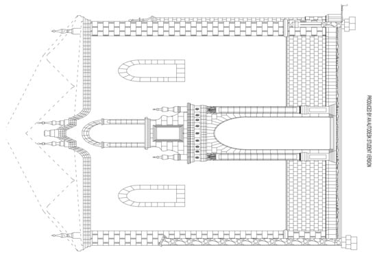 Using the work of the research team’s engineers, surveyors, and conservator-restorers, a 3D model was constructed containing the building’s architectural structures and features. In this model the church was restored to its original appearance prior to the fire [,].