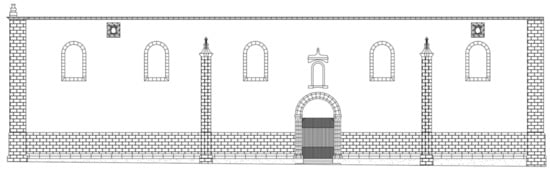 The church has a rectangular footprint with two visible façades. The convent building adjoins the other two façades. A photogrammetric survey was performed for both façades using 50% overlap. Metashape 2019 (a new version of PhotoScan) was used to do the analysis, image processing and façade restitution, obtaining their orthographic representation (see Figure 4).