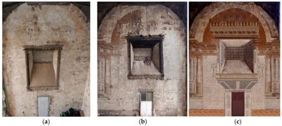 If one of the important challenges faced in the architectural conservation of historic buildings and archaeology is establishing how to correctly interpret structural and architectural features, so too is establishing how to reconstruct murals correctly. As mural paintings and frescos are extremely delicate and highly susceptible to wear and tear, this task is labour intensive, and requires expensive technical expertise []. Deterioration mechanisms include: unstable ambient conditions; structural problems affecting the building that can lead to delamination and plaster stratigraphy, which cause artworks to lose their artistic qualities; dampness; saline efflorescence; biodeterioration; and poor repairs that do not respect the building’s antiquity or its original materials. All of these mechanisms can impact the quality of such artworks by causing them to be partially obscured, i.e., whitewash, or completely destroyed.