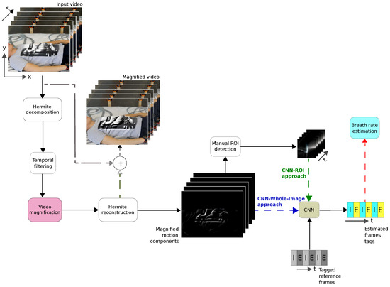 The proposed respiratory rate measuring system is based on motion magnification technique using Hermite transform and a CNN to classify the frames. Respiratory rate estimation is computed using the method proposed by [30] as explained next.