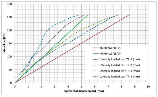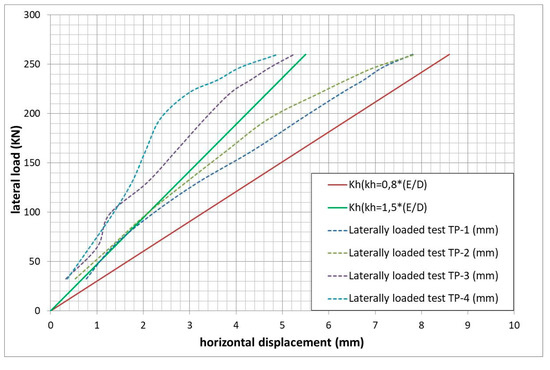 Comparison between the pile load tests with the horizontal reaction modulus.