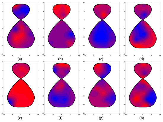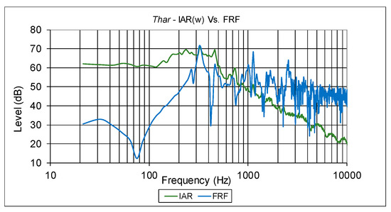 During the measurements, both acoustic pressure and velocity vibrations were collected and stored, as well as the excitation signal from the hammer. The modal analysis was undertaken for resonant frequencies up to 1 kHz. In addition, as described in Equation (3), the IAR was calculated in a second step for all three musical instruments.