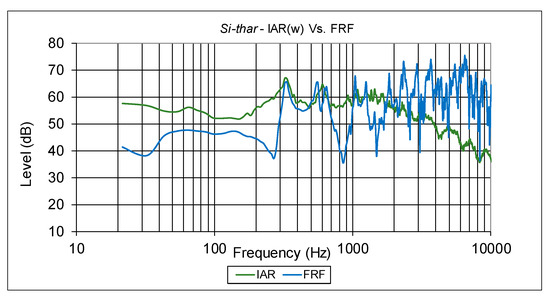 Measurements of the IAR were reported in combination with FRF charts for all three musical instruments. In general, the low–mid IAR and FRF frequencies were near to each other in all cases, while correlations at the higher frequencies were lower. This result was already found for the kettledrum, and is a typical result of frequency analysis (with a narrow band of 10 Hz). Moreover, the thar and si-thar had a comparable frequency response. Both had a resonant frequency at 322 Hz, although they differed rather significantly at medium and high frequencies. Due to the large amount of cords and the more complicated form of the sound chest, the santoor generated a more balanced sound spectrum, which differentiated it from the other two string instruments.