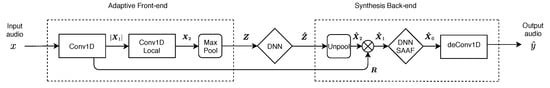 Block diagram of CAFx; adaptive front-end, synthesis back-end and latent-space DNN.