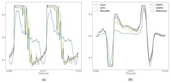 Nevertheless, from Figure 6a, we can conclude that all models successfully accomplished the modeling of the preamp. Most of the output audio is only slightly discernible from their target counterparts, with CRAFx and CWAFx being virtually indistinguishable form the real analog device.