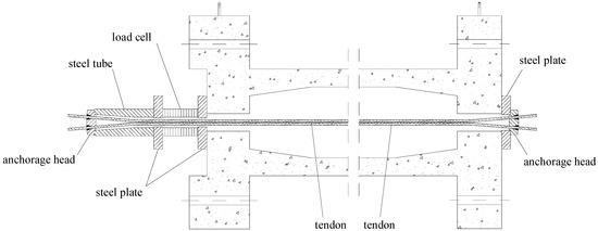 For Beams D-1.79 and D-3.08, in order to evaluate the effective longitudinal prestressing force after losses and also the changes in this force due to the application of increasing torque, a load cell was placed between the head of the beam and the head of anchorage. Figure 6 illustrates longitudinal cuts at the ends of the prestressed beams and shows the technical solutions adopted to prestress the beams and to read the prestress force during the tests.