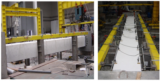 The load was applied by imposing a low deformation rate with an electromechanical actuator. Several load cells were placed in different points of the global test device in order to record at any time the general loading state of the beams.