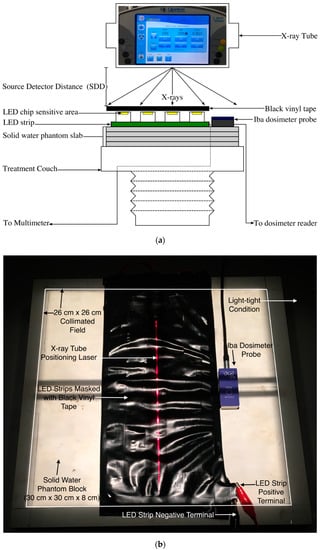 - Damulira, E.; Yusoff, M.N.S.; Sulaiman, S.; Zulkafli, N.F.H.; Zulkifli, N.A.; Shakir, N.S.A.; Zainun, M.A.; Omar, A.F.; Taib, N.H.M.; Ali, N.K.Y. Comparison of Current–Voltage Response to Diagnostic X-rays of Five Light-Emitting Diode Strips. Appl. Sci. 2020, 10, 200. [Google Scholar] [CrossRef]