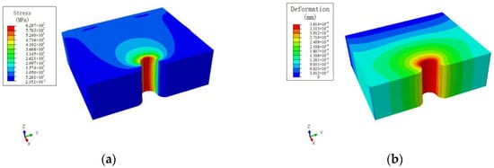 Second, a series of parameters necessary for simulation are set, as summarized in Table 1. In this simulation, the back of aluminum foil is fixed and all its freedom degrees are limited as boundary conditions. Hexahedron mesh is employed for the finite element calculation. The stress and deformation distributions are shown in Figure 3. Obviously, the von Mises stress near the breach is much higher than in other areas and exceeds the rupture strength of aluminum. As a result, a straight slit with great width consistency can be machined.