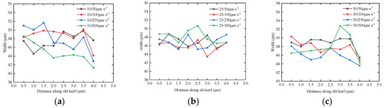 Width data of slits with different initial velocities: (a) 10 μm·s−1; (b) 25 μm·s−1; (c) 50 μm·s−1.