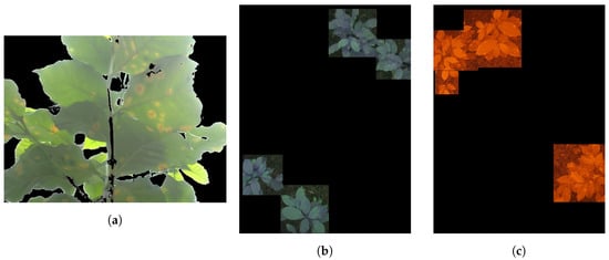 Example of preprocessed image files: (a) RGB image; (b) RGN image; (c) RE image.