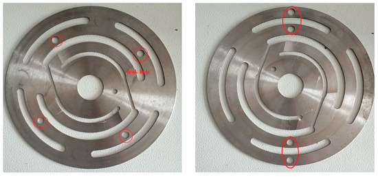 In order to accurately know the delayed closing phase of the valve plate, a displacement sensor was installed inside the actuator to test the real-time displacement of the valve plate which is extremely dangerous in practical applications and is not allowed. Figure 22 shows the simulation of valve leakage by making leak holes into the suction valve plate. The comparison of the actuator response tested by the displacement sensor at different hydraulic oil temperatures is shown in Figure 23. It was found that under the same control signal, the actuator’s response became faster as the temperature of the hydraulic oil increased. Therefore, it is possible to change the temperature of the hydraulic oil to replace the change in solenoid valve performance and spring stiffness to affect the system regulation performance.