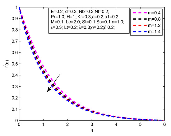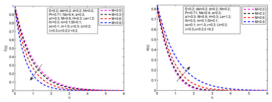 - There is a decreases in velocity profile with increasing values of , m, and M
