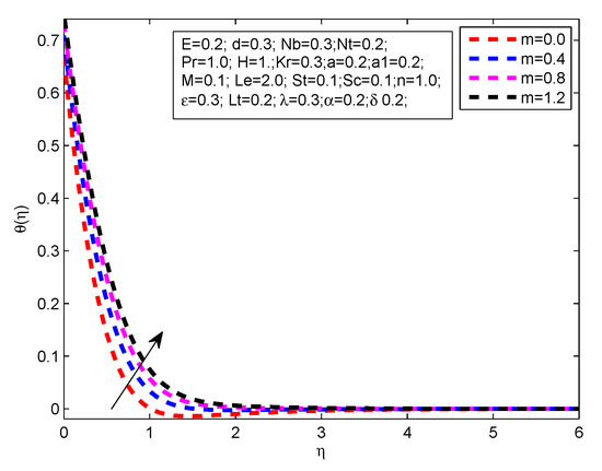 - The temperature profile increases with the exceeding values of M, R, m, H, L, and .